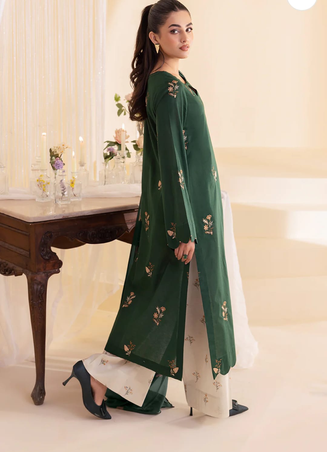 intricate embroidery on the shirt, and sleeves, Full embroidery