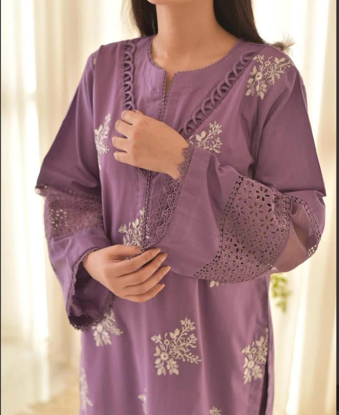 Cut-work detail on the sleeves